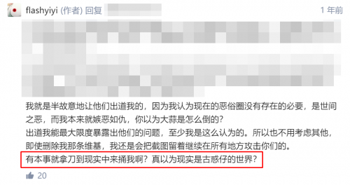 自从在音MAD事件中被批判以及被高雅人士出道后,喜欢自比民意代表的唐人似乎在屑站无法找到满足感,遂决定前往支乎继续自己的黑屁事业,大肆钦点本站以及“恶俗圈”,详见以下三个链接: