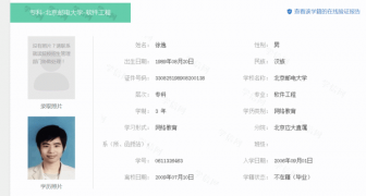 可是经过调查,我们却发现徐特首的北邮文凭竟然读的是专科层次软件工程的网络教育,除此之外在15年之前没有其他的文凭。众所周知,网络教育是给钱就来者不拒的,是除了国家不承认的野鸡大学以外含金量最低的文凭,根本就不用考,甚至令人怀疑他到底去没去过北京邮电大学。