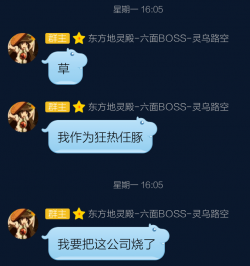 值得一提的是,李泽航早期屑站id为御坂96165号,之后于2017年后半年才改成灵乌路空,鉴于李泽航同时期在群里疯狂晒出东方stg截图,笔者强烈怀疑李泽航此时才刚开始接触东方stg游戏。